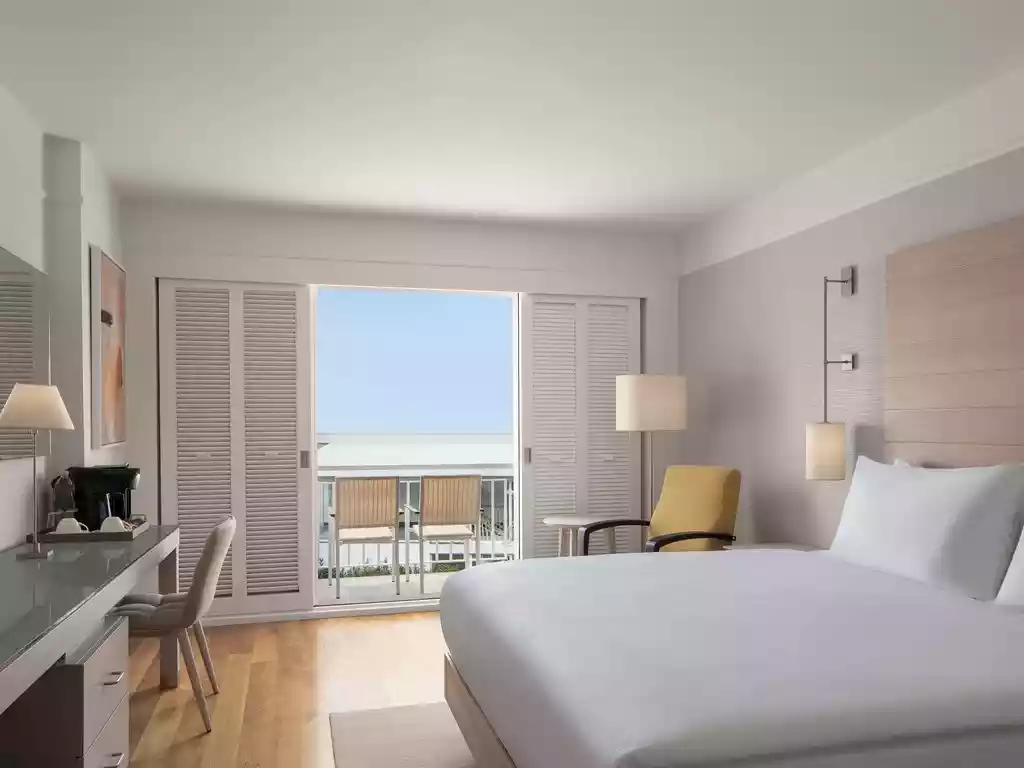 Özellikler: Tek büyük yatak veya iki ayrı tek kişilik yatak seçenekleriyle sunuluyor. Ferah lüks odaların tümü balkonlu.