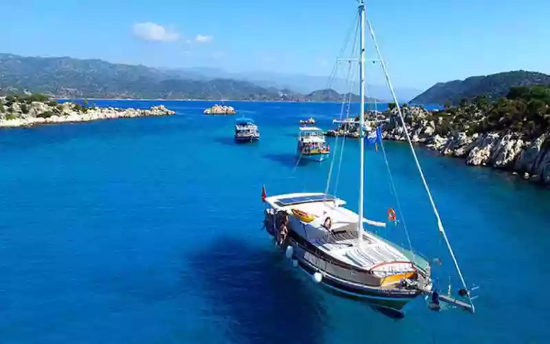1950’lerden günümüze her geçen sene daha büyük bir ilgiyle karşılaşan turlar en başından beri gulet yatlarla gerçekleştiriliyor. En fazla 14-16 kişilik grupları ağırlayan guletler, dünyaca ünlü geleneksel ahşap ve el işçiliğinin ürünleri.